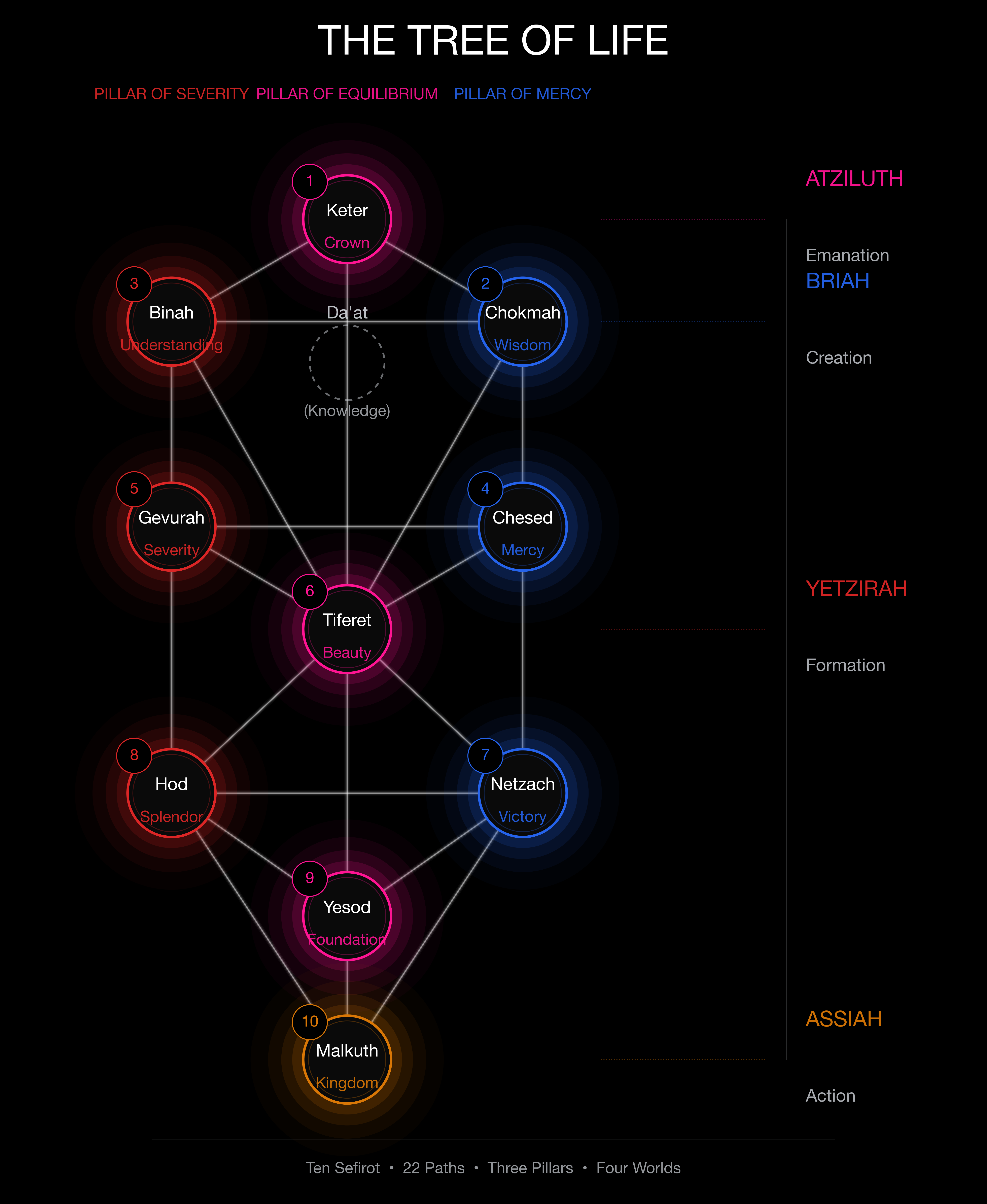 The Kabbalistic Tree of Life encodes a similar structure. Ten Sephirot (spheres):